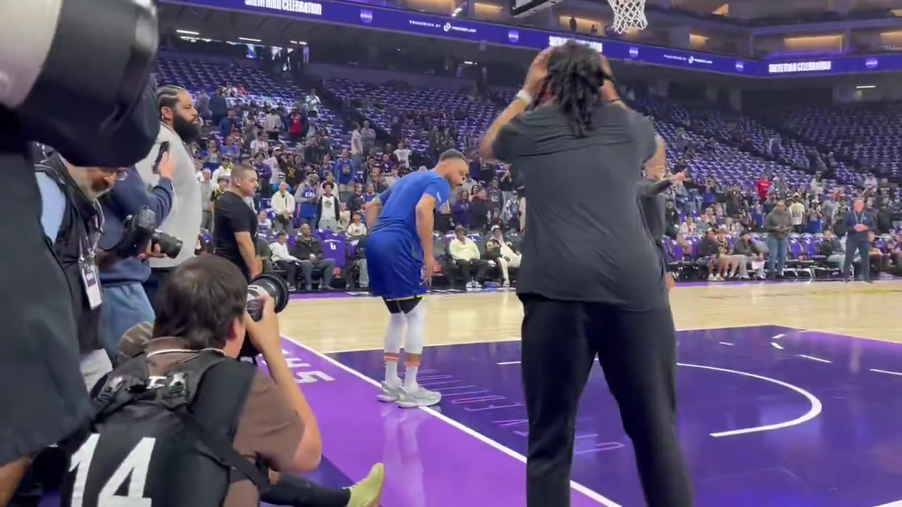 库里赛前热身秀了一记单臂暴扣膝盖看上去是完全没事了