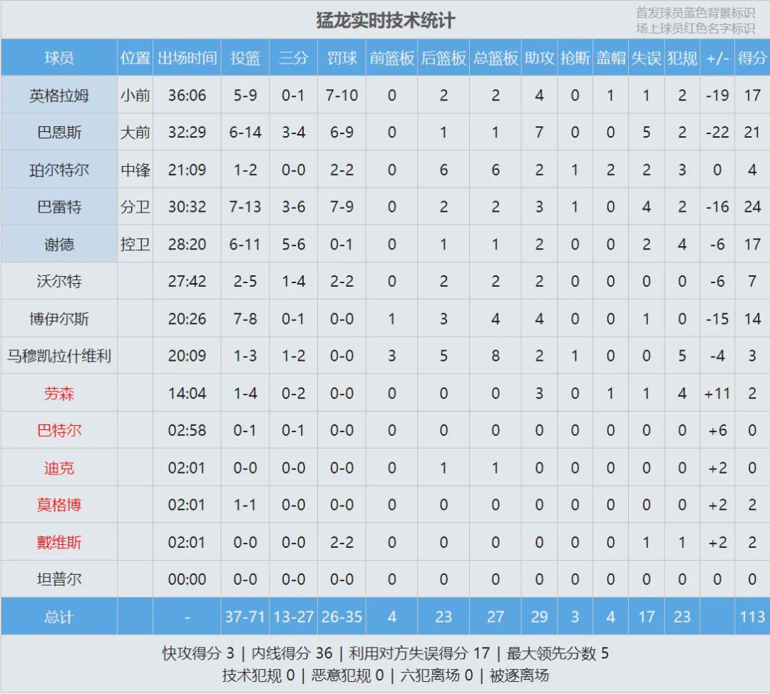 穆雷投篮22中7,三分8中0,罚球16中16,得到30分5篮板7助攻2失误,正负值+13全场最高。爱德华兹受到膝伤影响,身体不在最佳状态:投篮19中7,三分9中2,罚球7中6,拿到22分9篮板7助攻3盖帽3失误4犯规。