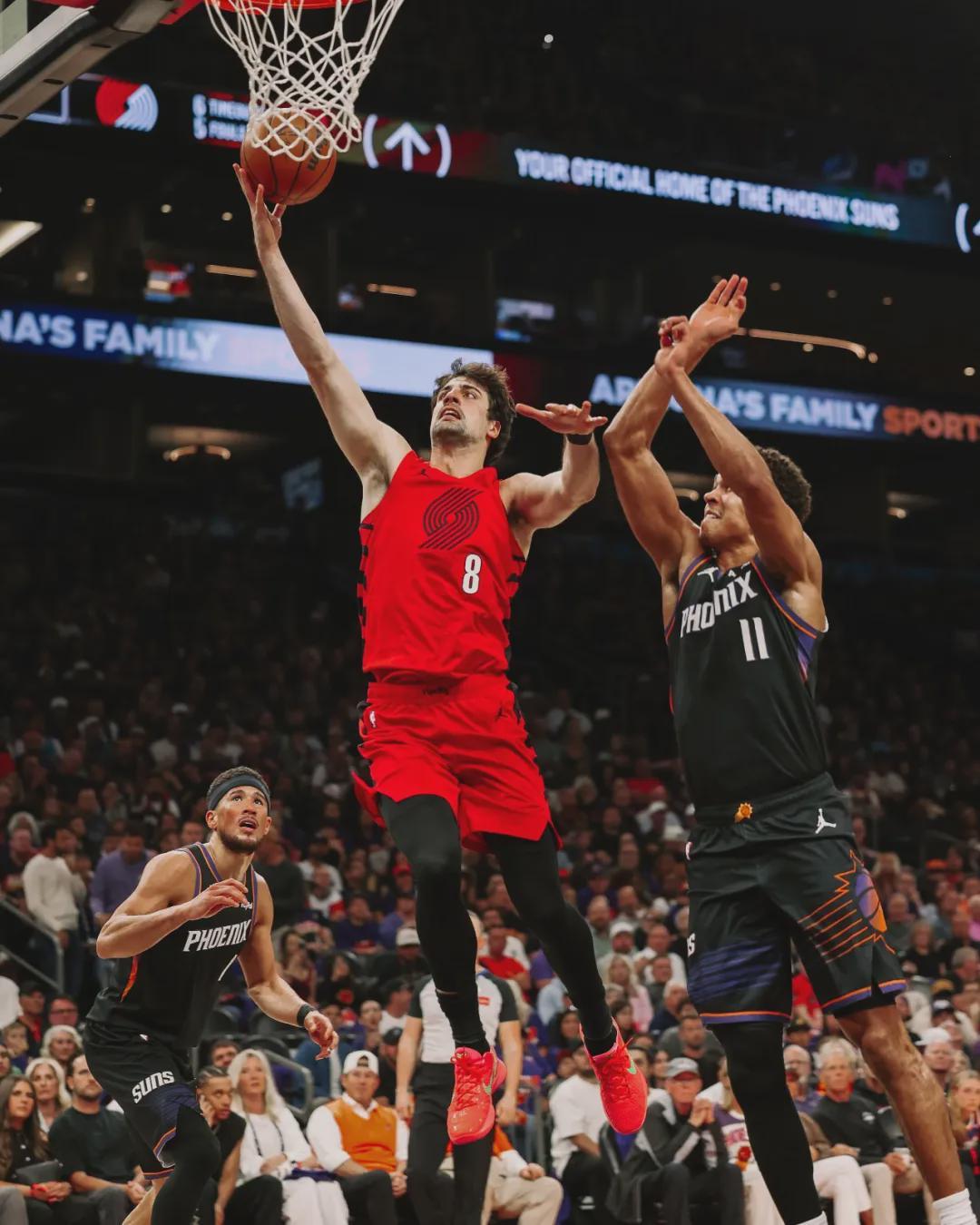 杰伦-格林和布克复出,为了附加赛拼了。太阳首发:布克、杰伦-格林、乔丹-古德温、狄龙-布鲁克斯、马克-威廉姆斯。开拓者首发:霍勒迪、亨德森、阿夫迪亚、卡马拉、克林根。赛季开始前,估计没人能想到开拓者会杀进前八!