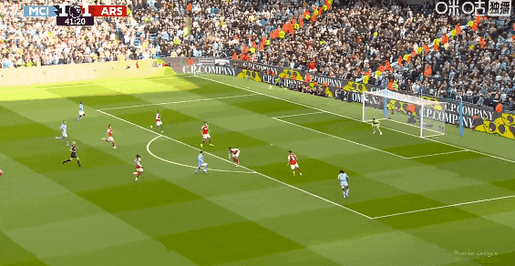 禁区个人秀!比赛第16分钟,谢尔基独闯龙潭低射建功!曼城1比0阿森纳。