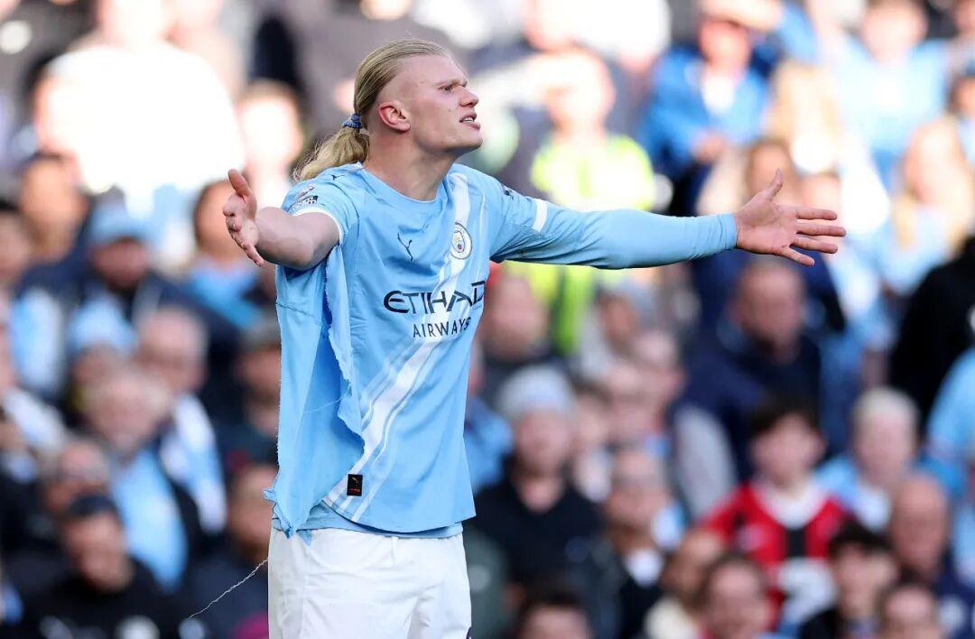 比赛第65分钟,哈兰德抢在倒地前打门帮助球队再下一城!曼城2比1阿森纳。