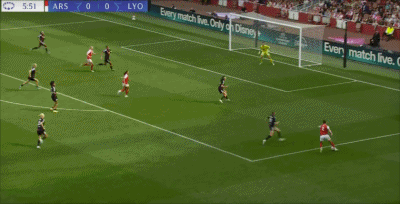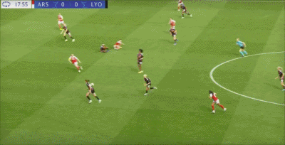 第19分钟,布兰德内切抽射破门,里昂女足1-0阿森纳女足