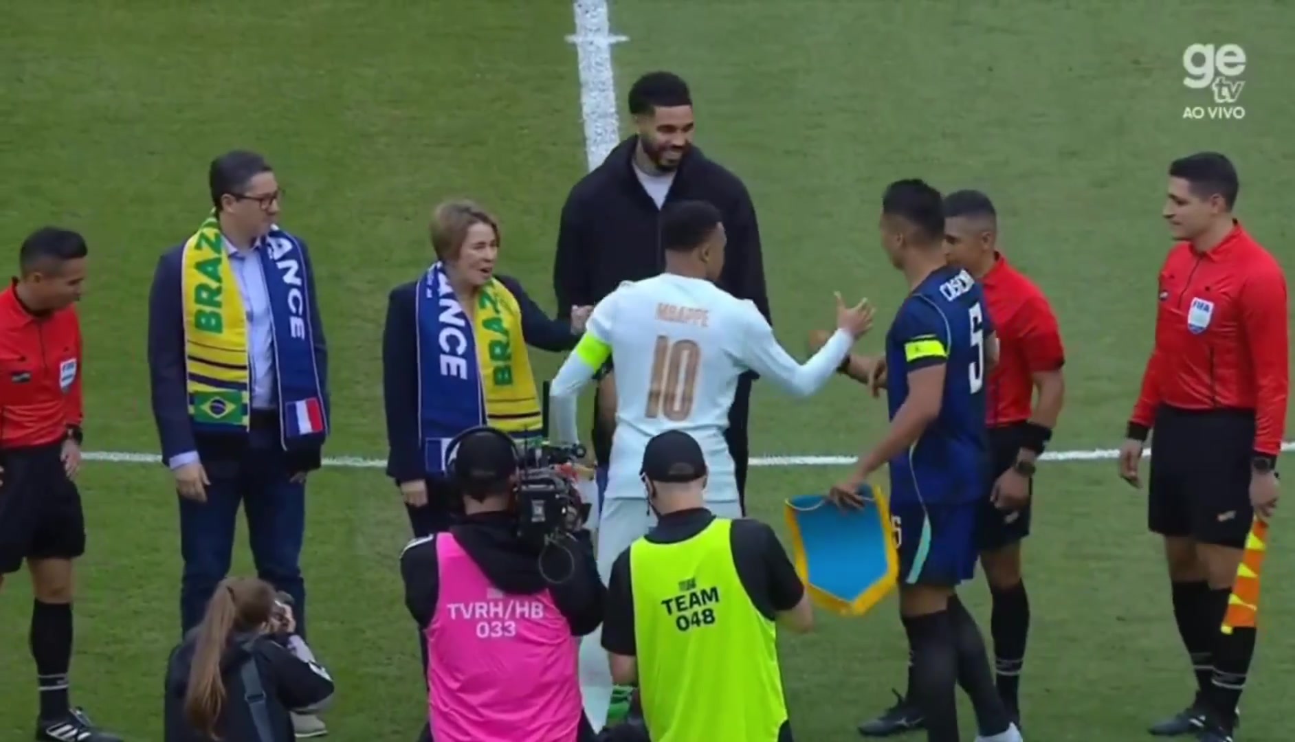 友谊赛法国2-1险胜巴西姆巴佩维尼修斯赛后互换球衣
