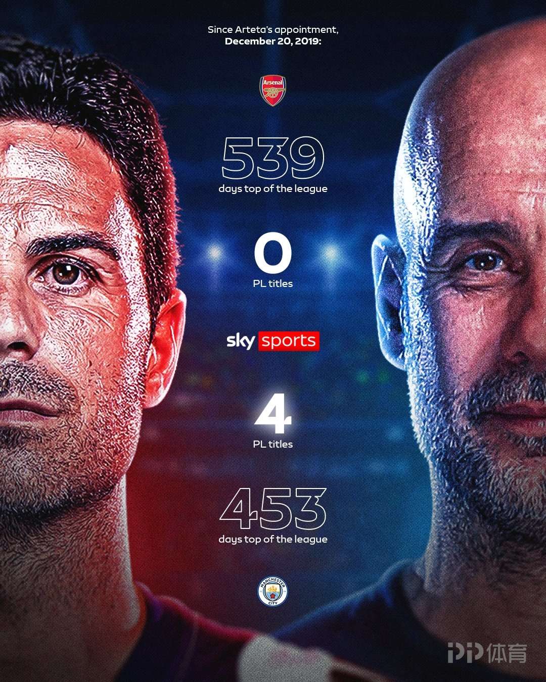 扎心!阿尔特塔执教以来阿森纳领跑英超时间比曼城多 却未曾夺冠