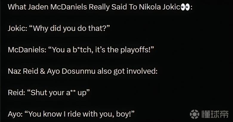 在4月26日结束的NBA季后赛比赛中,麦丹在最后时刻上篮后被约基奇质问,最终引发两队冲突。