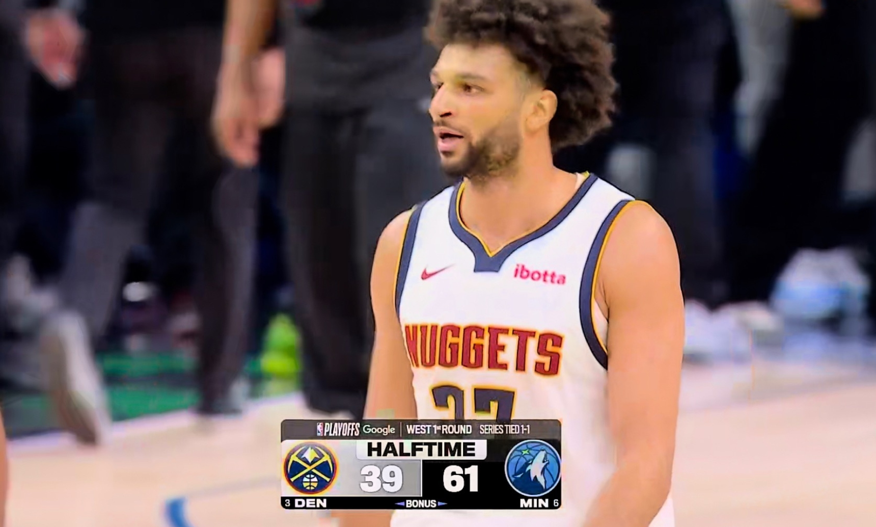 NBA季后赛今天继续进行,丹佛掘金队到了客场对阵明尼苏达森林狼队。