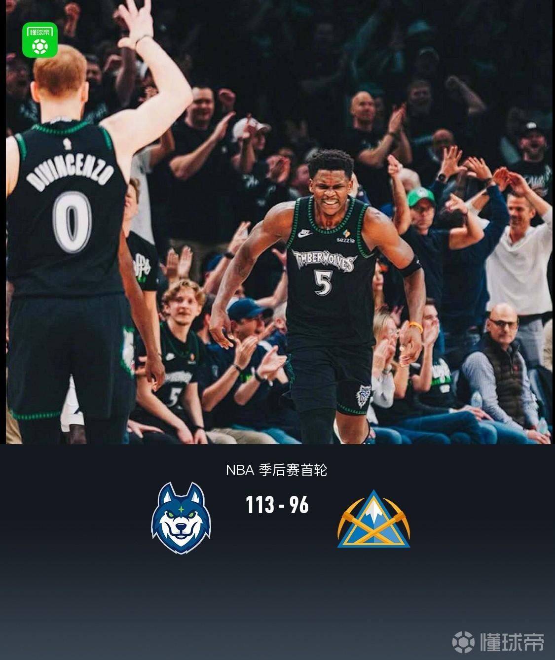 森林狼113-96轻取掘金2-1反超 约基奇27+15
