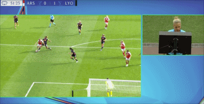 第19分钟,布兰德内切抽射破门,里昂女足1-0阿森纳女足