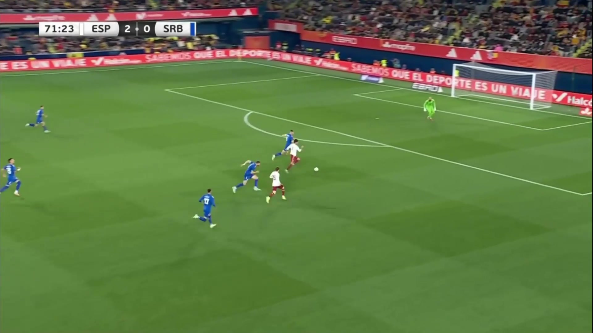 西班牙3-0锁胜奥尔莫直塞费兰脚后跟助攻穆尼奥斯外脚背破门