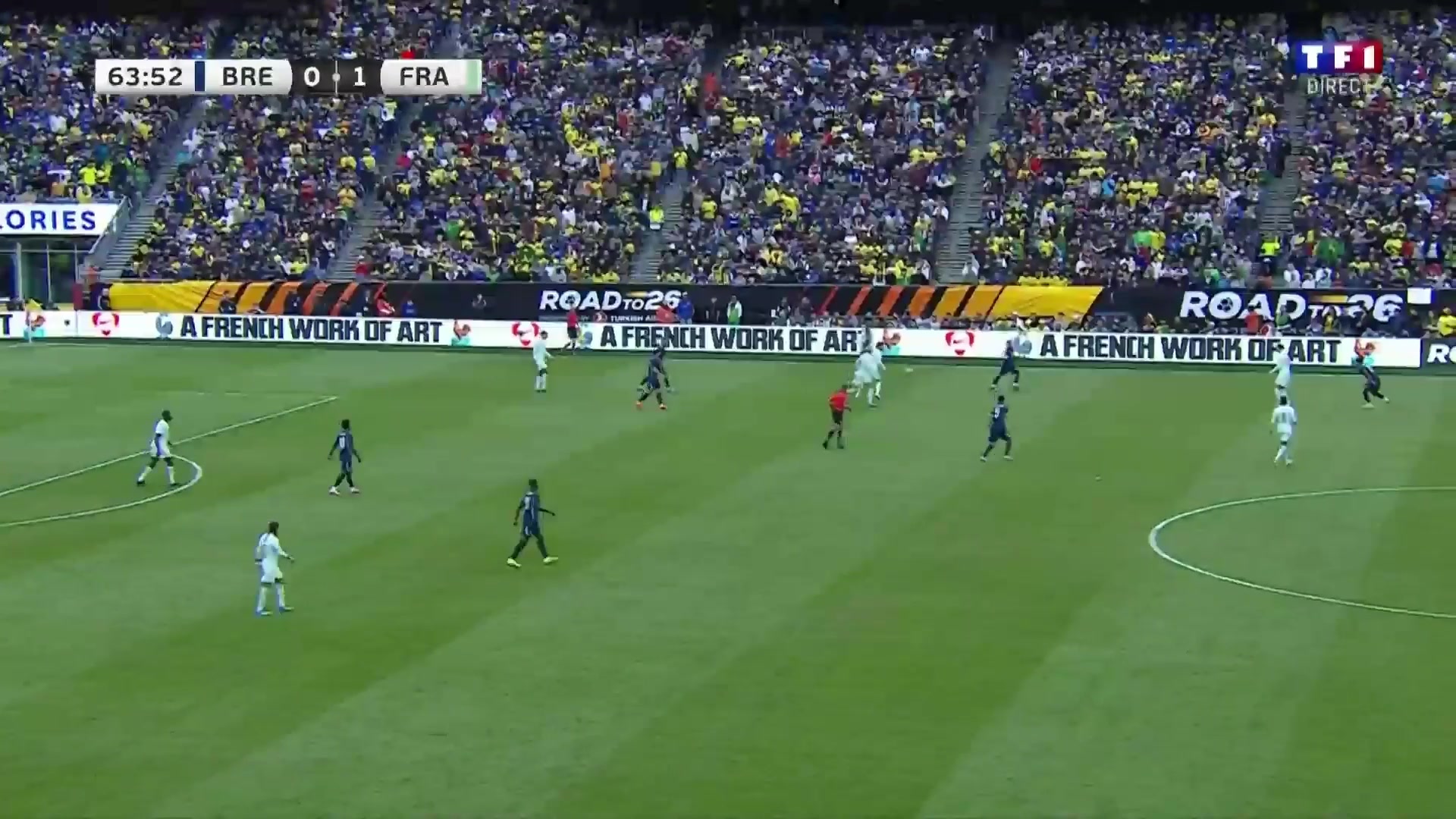 法国先下一城图拉姆禁区内做球杜埃抽射近角得手