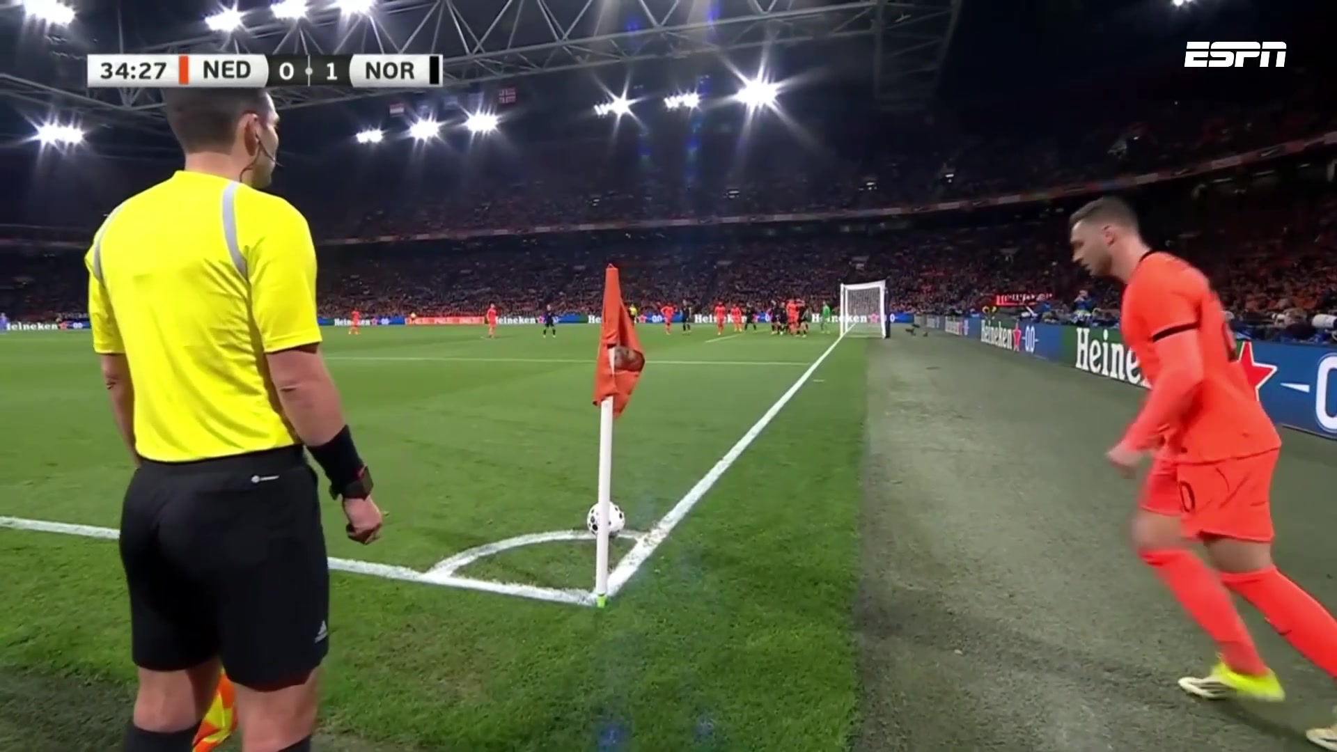 荷兰1-1扳平比分范戴克高高跃起头球破门库普梅纳斯角球助攻